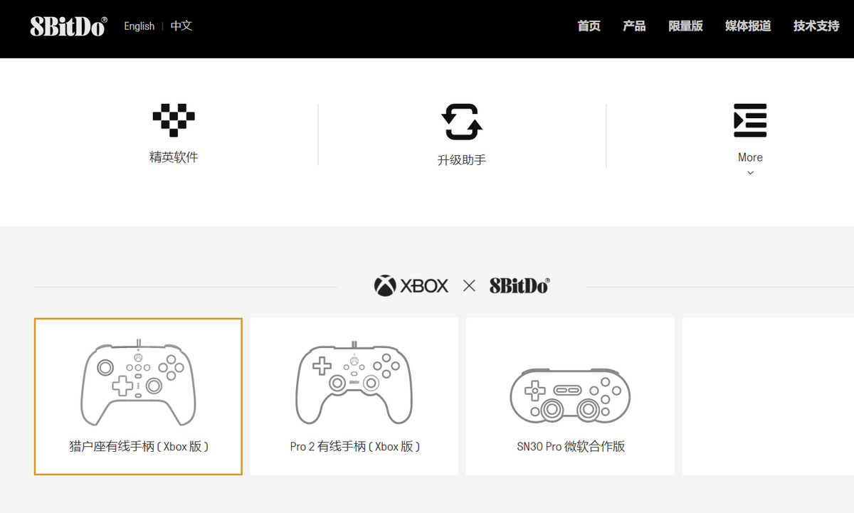 接下来开始连接设备玩游戏,八位堂猎户座手柄Xbox版支持Xbox Series X/S、Xbox One、Windows10/11,我们连接Windows10的电脑来测试。为了更好地测试手柄的功能,我们先安装精英软件,登录八位堂官网下载精英软件,选择对应手柄的精英软件,然后选择对应的平台下载,当然你也可以直接在微软应用商店里面搜索8BitDo Ultimate Software,选定对应的软件下载,下载完成后安装,建议大家直接微软应用商店搜索下载,更简单省事。