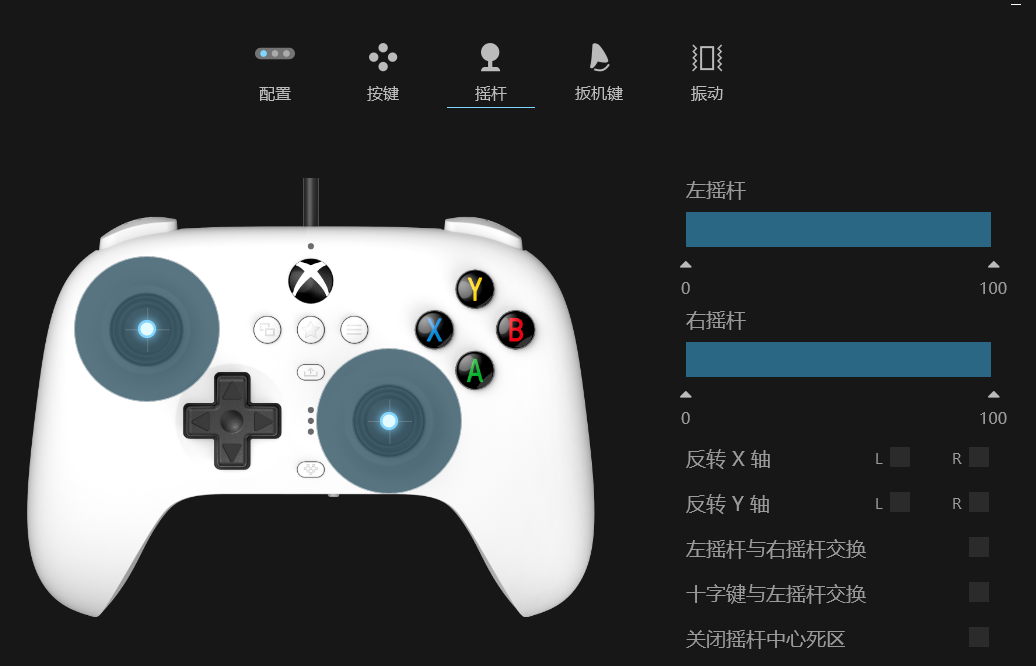 摇杆支持调整区域大小,并支持左右调整,还支持反转XY轴和十字键与左摇杆交换等。