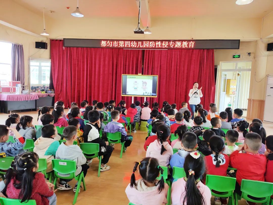 2022年4月22日,女童保护基金个人志愿者讲师李姝走进贵州省黔南布依族苗族自治州都匀市第四幼儿园,为170名孩子和10名家长讲授了2堂“爱护我们的身体”儿童防性侵课程,并发放儿童防性侵手册儿童版170本。共同参与活动的志愿者还有胡斓。