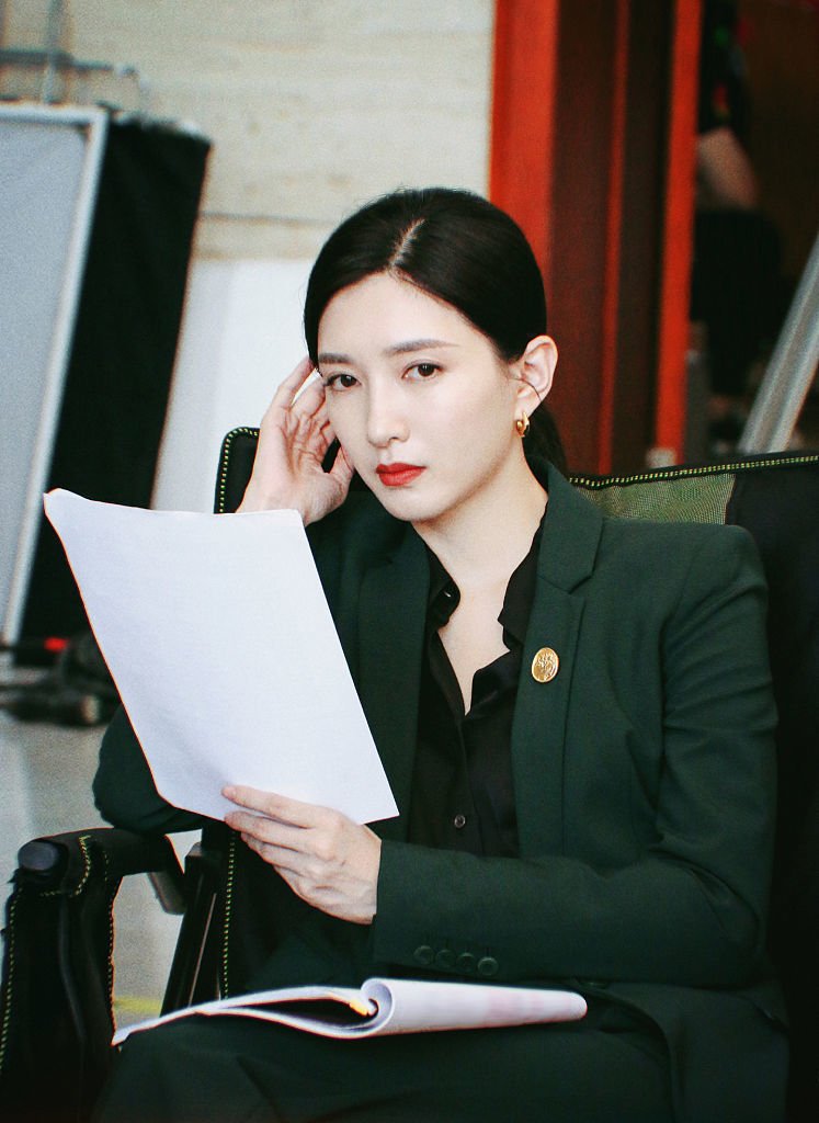 江疏影《女士的法则》花絮照曝光 穿黑色西服尽显律师风范