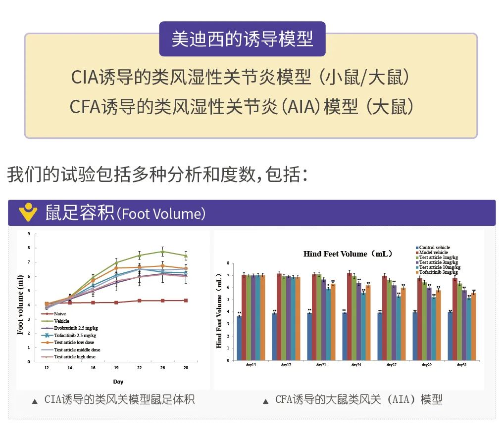 我们构建了多种成熟的自身免疫性疾病的动物模型,能够全面的反映和评估各种疾病的病理学和药理药效学特征,尤其是针对当前热门的JAKs抑制剂的药效学评价有着丰富的经验。