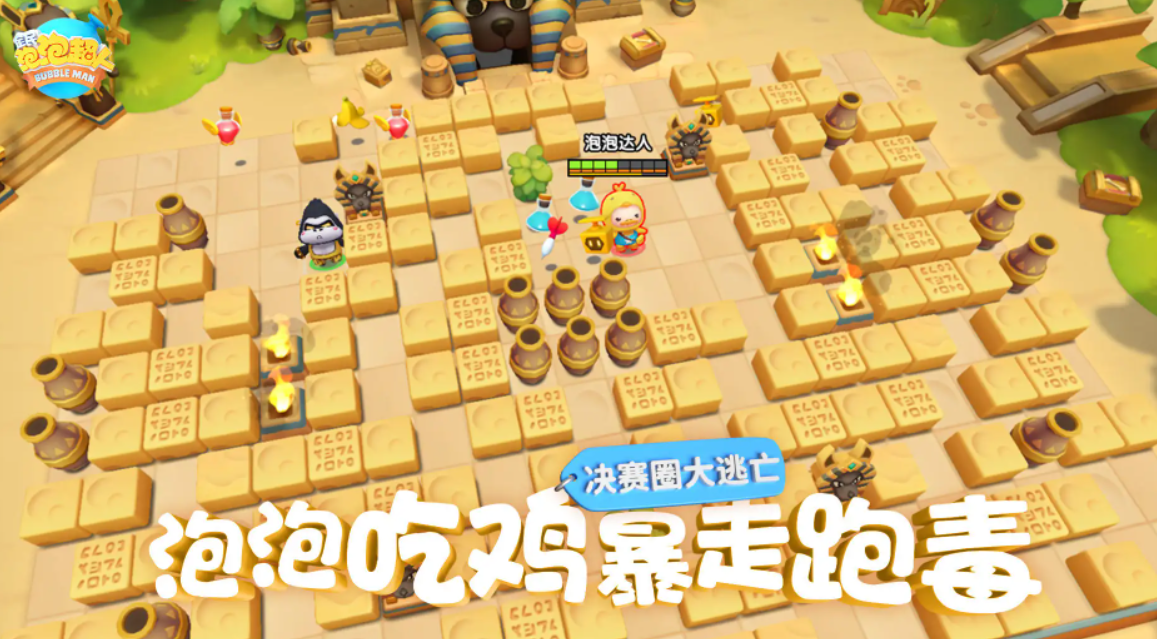 最吸引我眼球的,还要数万物皆可吃鸡的“大逃亡”模式。别看游戏可可爱爱卡卡通通,但在泡泡的世界中百人同屏竞技吃鸡的感觉也是十分紧张刺激的。