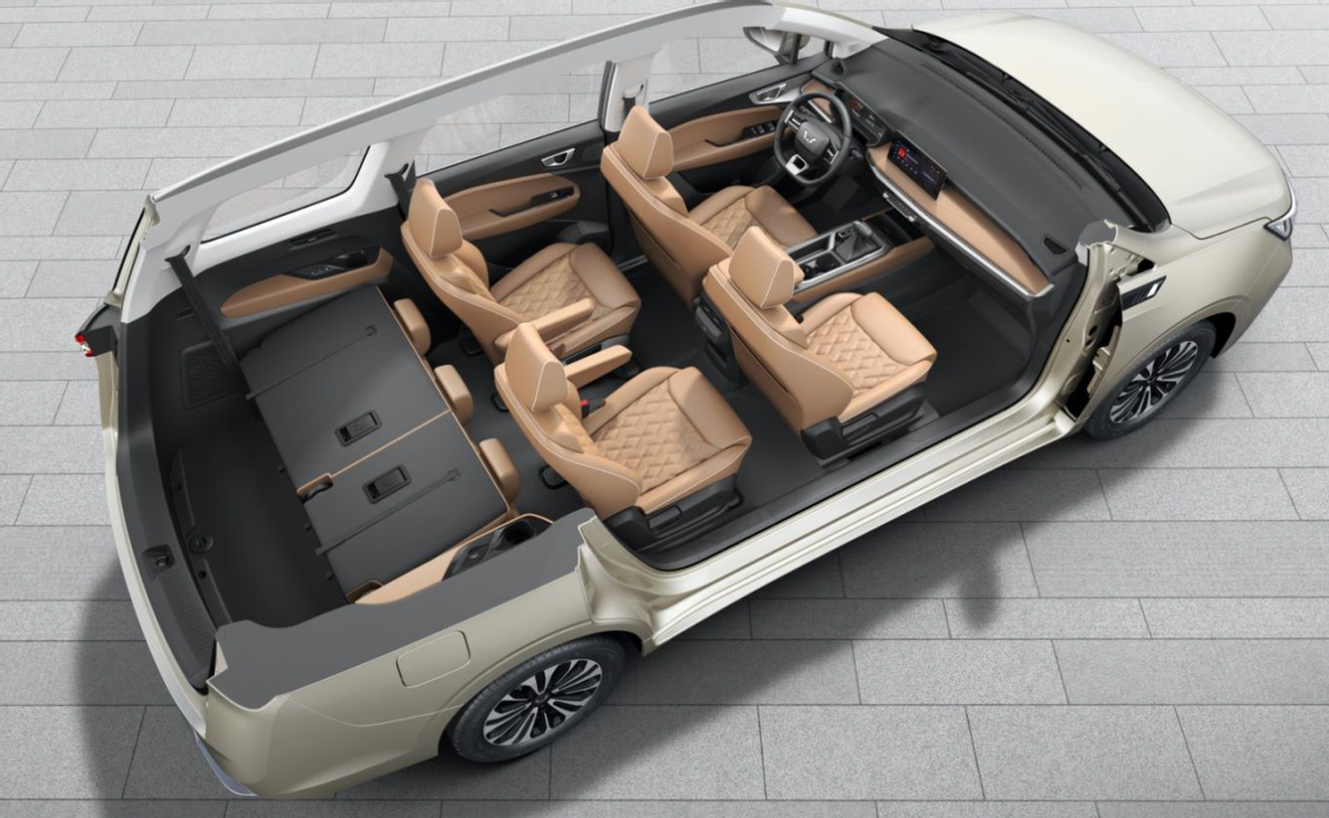 佳辰车身长宽高分别为:4785mm/1820mm/1760mm,轴距达2760mm;超长轴距和车身长度,使其在打造上乘的车内乘坐空间方面有更多的施展空间。而五菱佳辰也丝毫不浪费这种机会,其采用2+2+3灵动大7座的座椅布局形式,其中第二排为两个独立座椅,且可以前后移动120mm,支持靠背最大放倒150度。第三排座椅支持4/6比例放倒或向前翻折,整体可实现4、5、6、7座间灵活切换,使得后备厢最大可拓展出1177L的大“储物室”;同时车内还提供多达23处储物空间,不管是载物还是日常使用,都非常的便利和贴心。