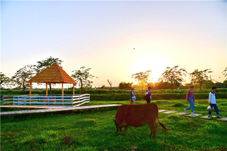 除了露营野餐,来到犇牛牧场可以这样玩,一家人当农夫,耕田耙地打辘轴拉格子插秧,将春天播种的整套农事活动都体验一次。有耕耘就有收获,有付出就有成果,游客们可以采摘瓜果,有机肥种植出来的瓜果就是不一样。