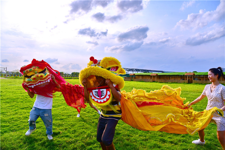 乡村的生活除了农耕渔耕农具,还有乡村民间艺术。游客在牧场可以体验舞龙、舞狮、舞春牛、敲大鼓等民间艺术。当然还有小朋友们最喜欢的DIY活动,植物拓染、小盆栽等。
