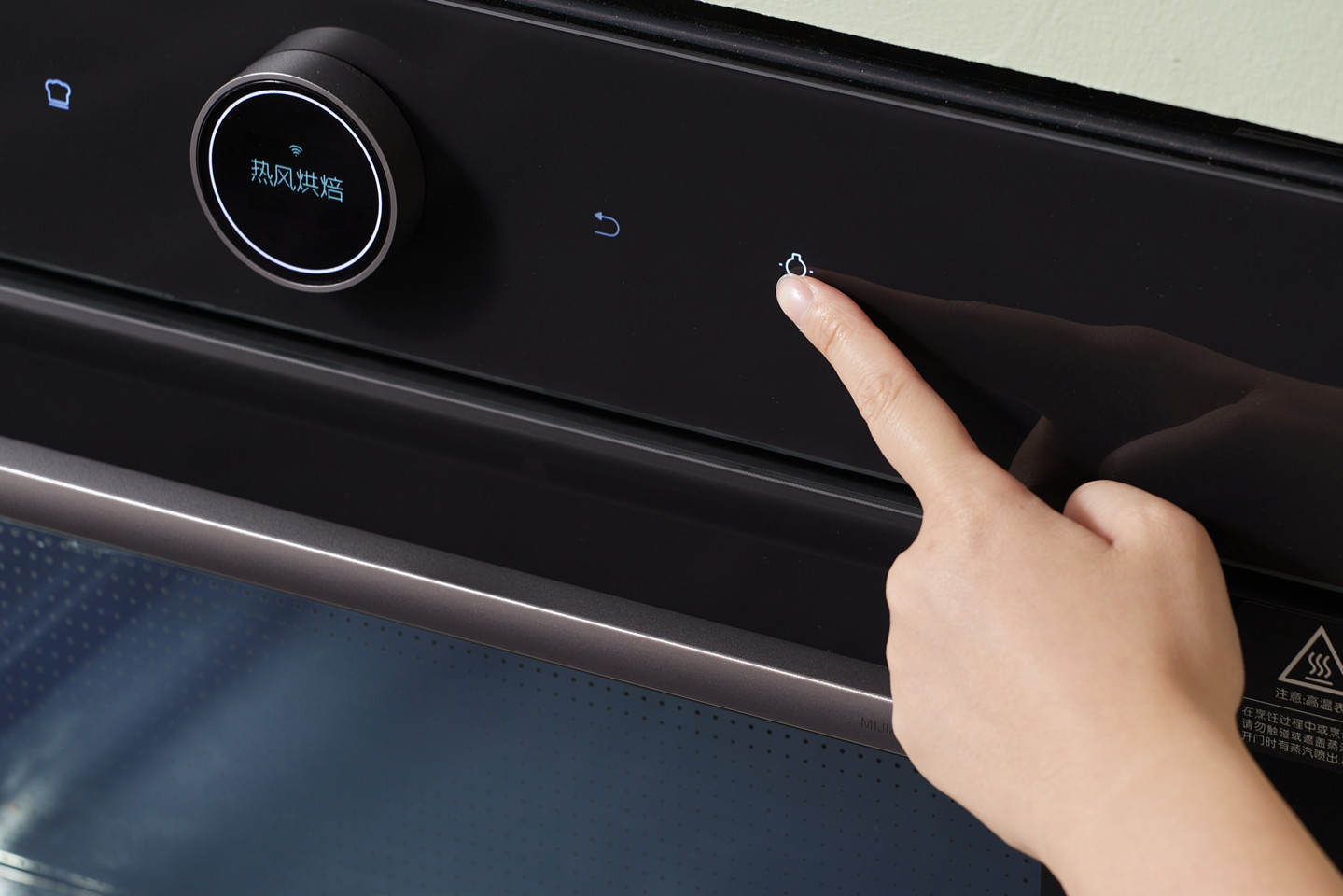 米家智能嵌入式蒸烤一体机在操控区做了简化设计,共有4个触摸键和1个OLED智显操控旋钮,在操控设计上做到了化繁为简,独特的OLED智显旋钮,无论工作模式、温度时间调节、开始结束操作,都只需要通过这个带显示屏的旋钮一旋一按就能完成,可以说是我用过操控最简洁的厨房家电了。