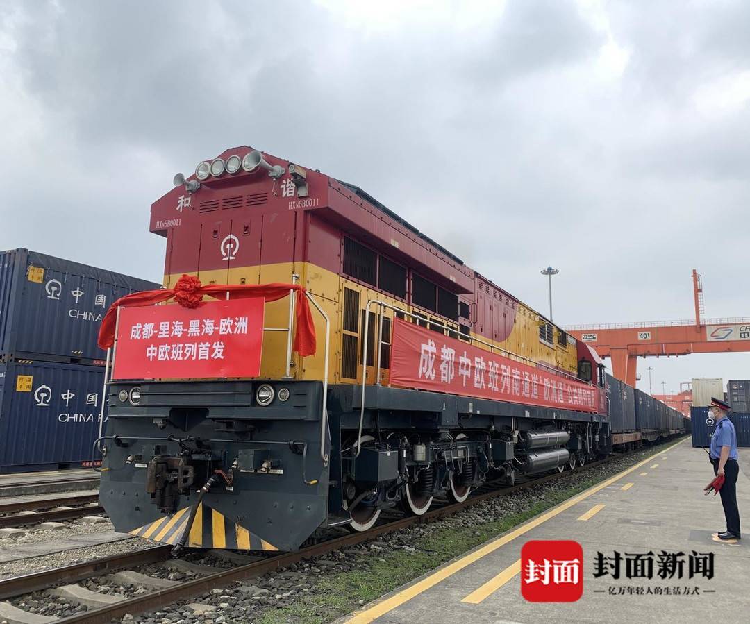 5月31日下午,成都青白江。随着一声鸣响,满载着汽车零部件、机械设备、灯具、日用品、冰箱等货值约4000万元的成都中欧班列南通道“欧洲通”公共班列从成都铁路集装箱中心站驶出。