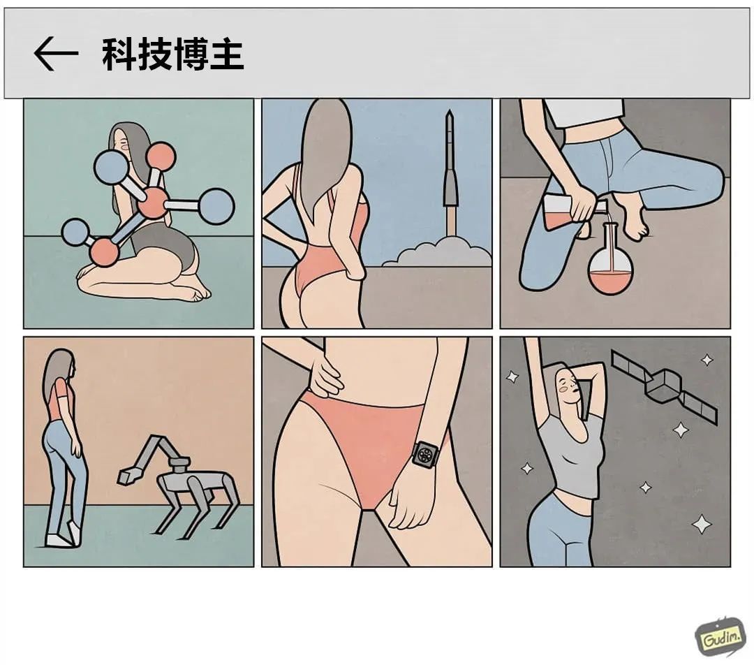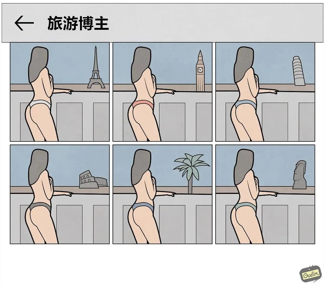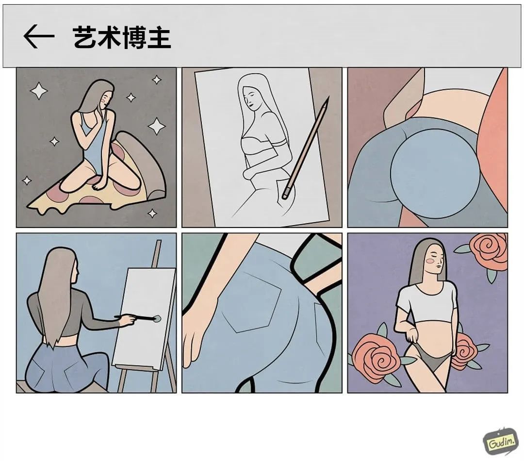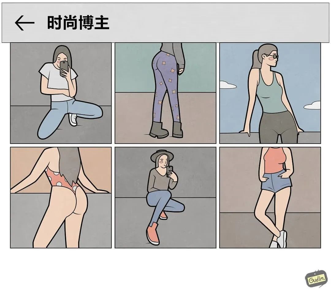 如今网红女博主的类型很多,她们社交页面的照片风格也有不同,来看漫画作者Anton Gudim的总结: