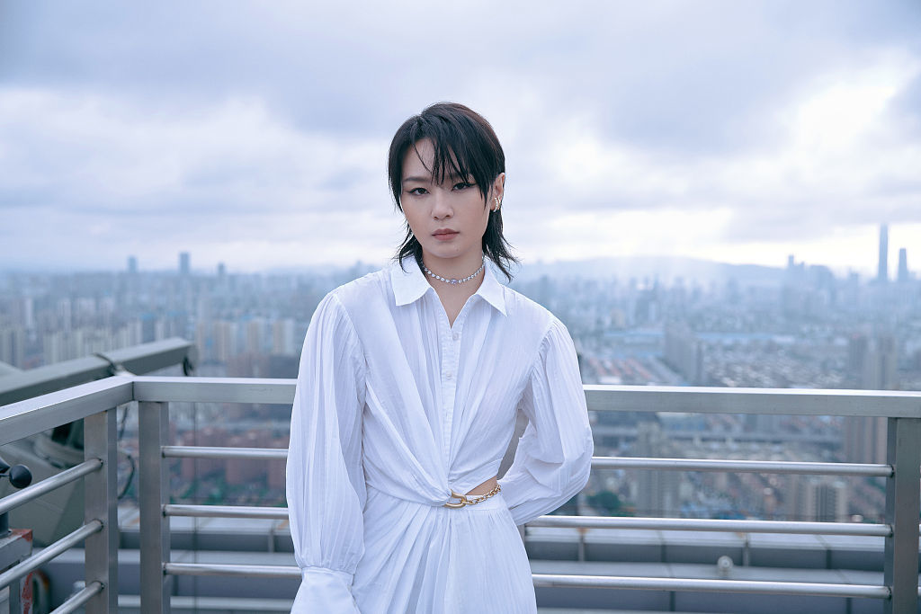 周笔畅白色衬衫裙简约温柔 高空眺望氛围感十足