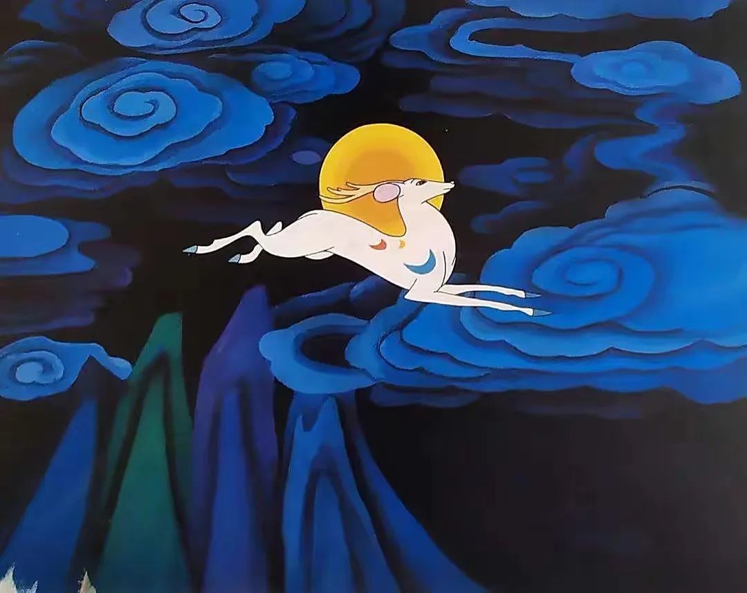 《九色鹿》是根据敦煌壁画《鹿王本生》故事改编,采用敦煌壁画的形式,用中国古代佛教绘画的风格讲述了九色鹿经常帮助遇到困难的人,在帮助过弄蛇人后,弄蛇人向国王告密出卖九色鹿,九色鹿用神力化险,弄蛇人受到应有报应的故事。九色鹿象征温润善良、诚实守信、勇敢正义的品质,同时也传递出不能见利忘义的观念。