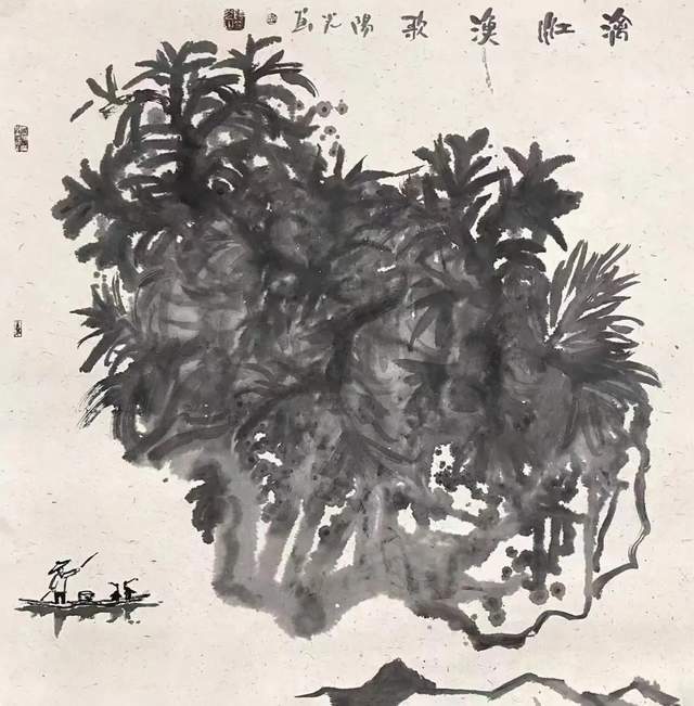 漓江渔歌,纸本水墨, 98X98cm,2021年