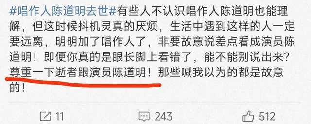 唱作人陈道明去世,营销号特意用词区分,却还是被网友们带跑偏了——引言。