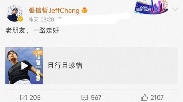 陈道明生前与张信哲有过合作,这首火遍大街小巷的《且行且珍惜》、《雾中机场》,都是他们合作的成果。知道陈道明去世后,张信哲心中十分不舍,在社交平台上发文送别老朋友,写下:“老朋友,一路走好”。
