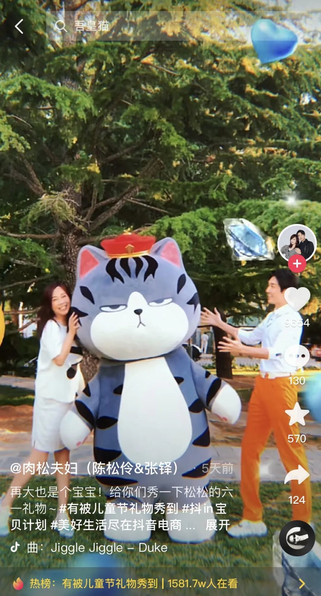 生日前夕,吾皇猫在抖音上与@Christy钟丽缇、@Shawn张伦硕、@金巧巧、@车晓、@肉松夫妇(陈松伶&张铎)进行了激萌互动,吾皇猫化身六一重磅“大礼”来到了大家身边,还与小跟班巴扎黑大秀舞技,引得评论区直呼“萌翻了”。相关话题#有被儿童节礼物秀到#登上抖音热榜,话题播放量达2.4亿,且在持续火热传播中。