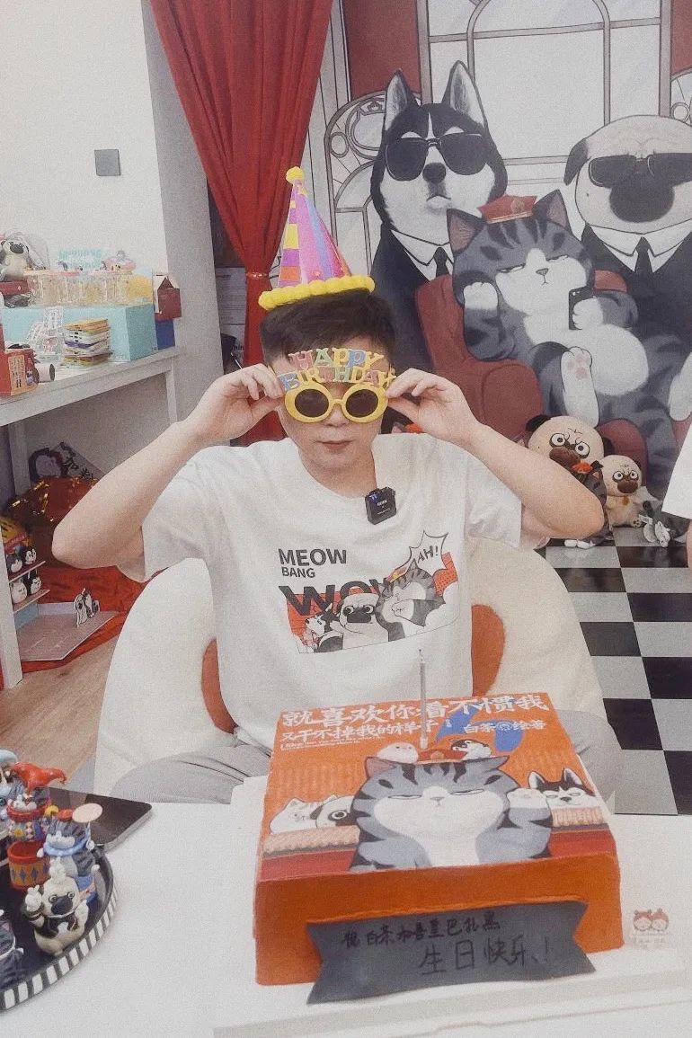 今年生日,吾皇巴扎黑收到了来自明星、动漫IP、漫画家、品牌、媒体等百余家挚友送出的贺电,也收到了来自各地“铲屎官”们送上的祝福。当天,微博热搜话题#今天是吾皇巴扎黑的生日#累计阅读量超2.1亿。抖音话题#有被儿童节礼物秀到#、#吾皇猫承包了明星们的六一快乐#累计播放量达2.6亿。当晚,白茶在抖音@吾皇猫 直播间开启庆生直播,与屏幕前的“铲屎官”们共同度过了一个难忘的生日派对。