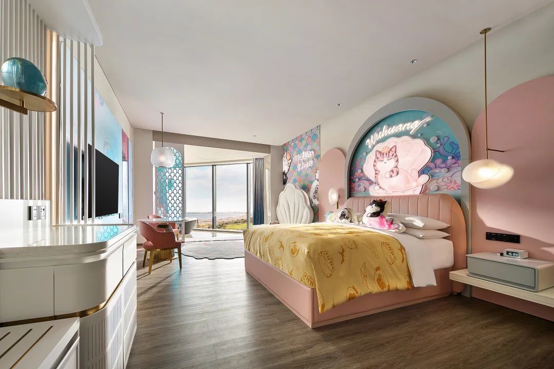 2022年5月20日,秦皇岛万豪度假酒店盛大启幕,吾皇猫与秦皇岛万豪度假酒店倾情打造的“今晚的梦是星辰大海”、“你是我的掌上明珠”两款主题房间也揭开了神秘面纱,与大家见面。吾皇猫、巴扎黑的可爱形象使得原本雅奢静谧的空间增添了更多的童真趣意。