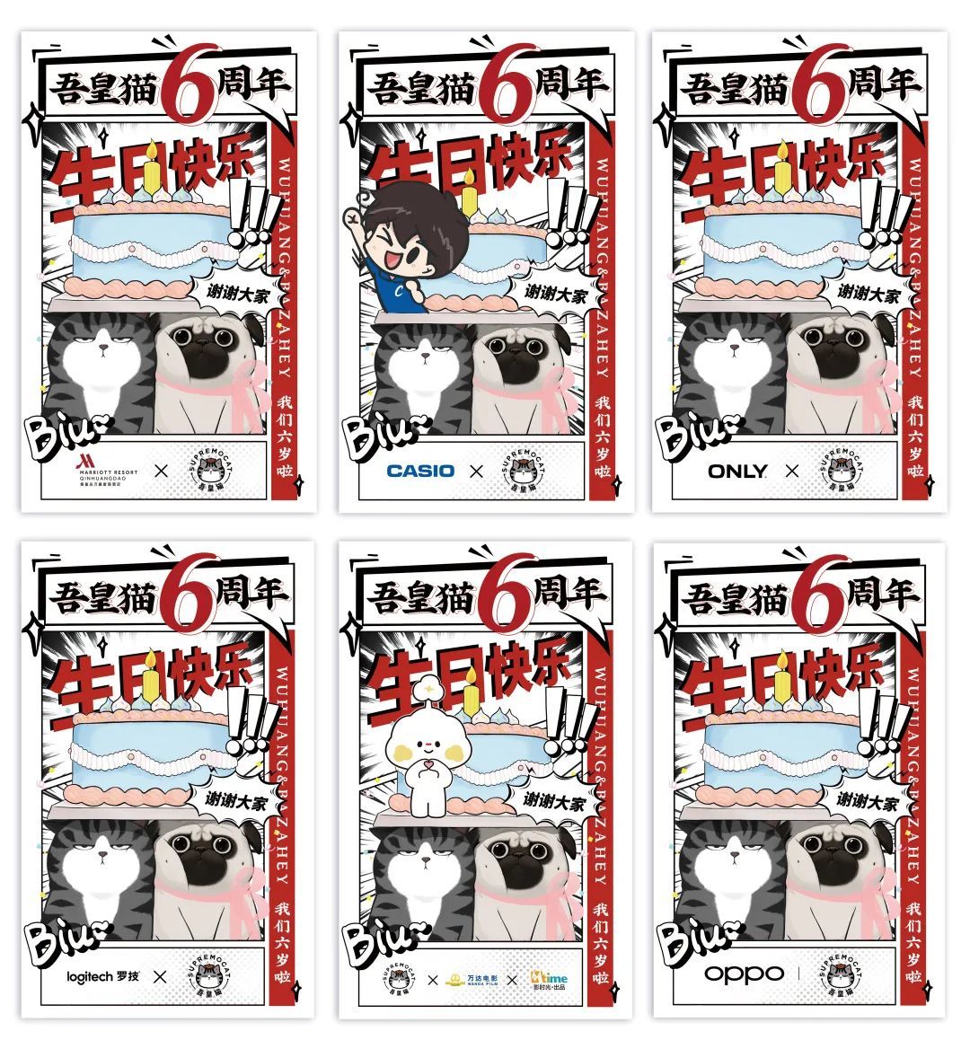 注:秦皇岛万豪度假酒店、卡西欧、ONLY、罗技、万达电影&时光网、OPPO共同为吾皇猫、巴扎黑送上祝福,以上为随机展示。