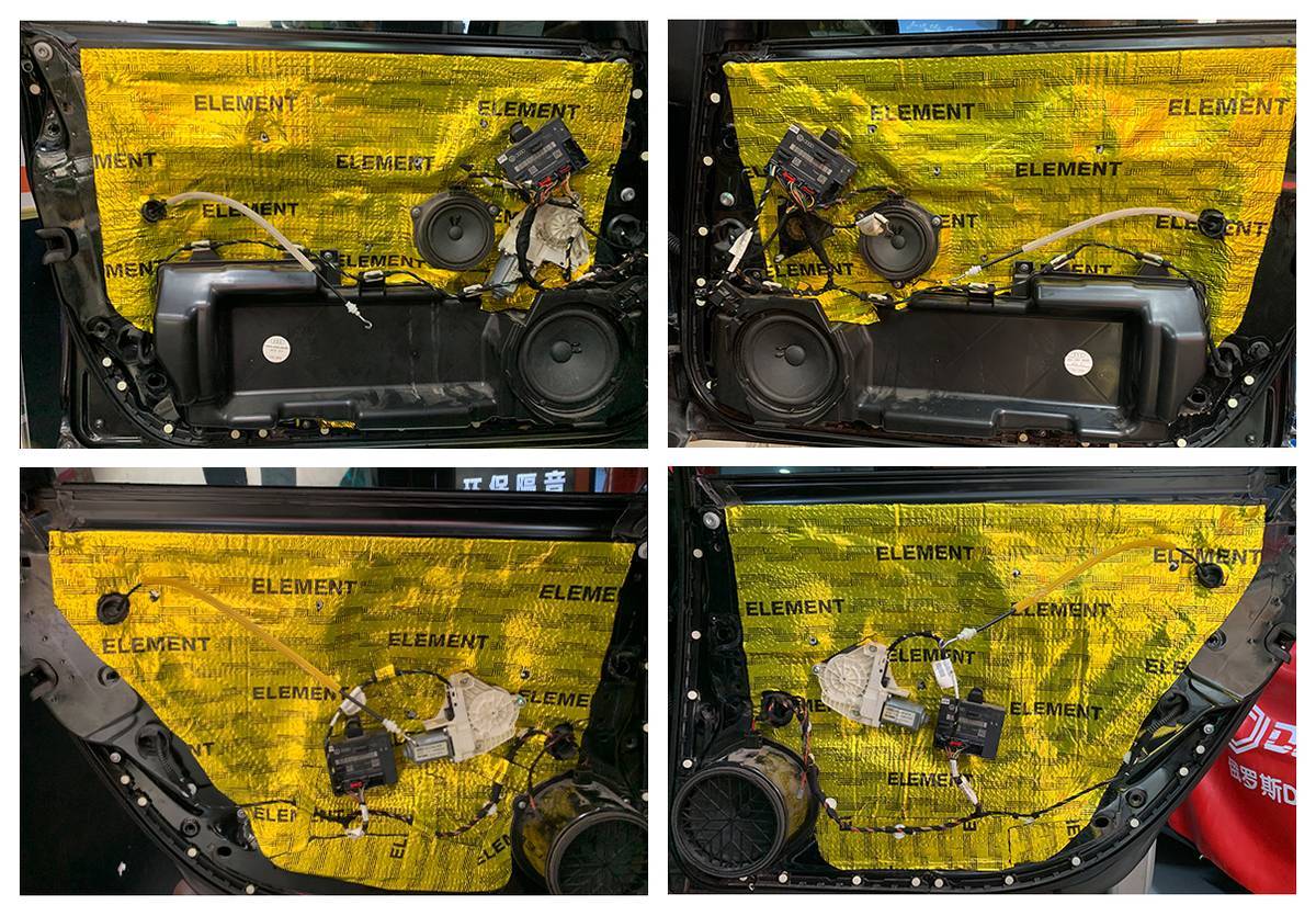 首先是车门的隔音处理,采用俄罗斯元素隔音,抑制共振噪音,阻隔风噪的传入,还能提升原车音响的音质。