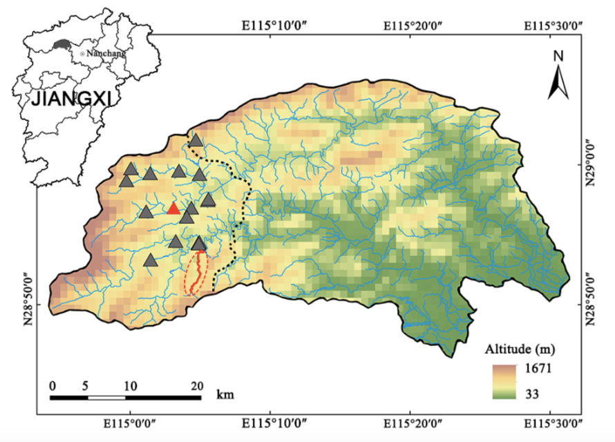 图1 江西省靖安县野外调查样点及样线位置示意图