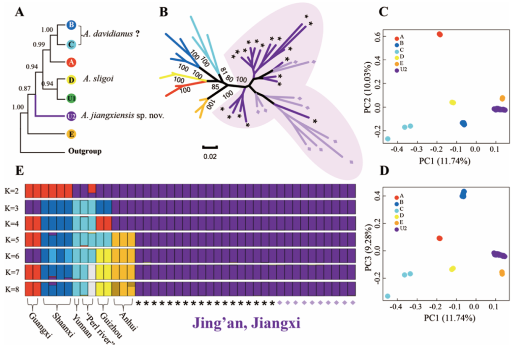 除了在遗传学上差异外,通过形态学比较,发现江西大鲵与其他5个支系在形态学上存在一定的差异,因此将其描述为一新种——江西大鲵,这是目前已知的我国首个遗传身份明确且野外稳定繁殖的大鲵纯种种群。并且,本研究建议将江西大鲵列为极危物种,并将其列为中国二级保护动物,以及亟需对其建立相应的保护行动计划。