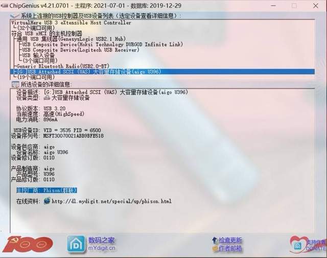 从ChipGenius获取的信息可以看出主控厂商是PHISON群联,群联主控、TLC优选颗粒,为如此惊艳的读写性能提供了底层硬件支持。