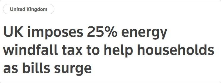 而面对反对党工党向能源企业征收“暴利税”的建议,保守党政府又似乎拉不下面子,想硬撑着不征收“暴利税”。可是,囊中羞涩的现实,又让保守党政府想要面子而无能为力,只能“打脸”般地出台了向能源企业征收“暴利税”政策,一方面想以此来增加政府收入,从而可以给予居民家庭一些补助。另一方面则想通过此举,遏制能源价格继续上涨。