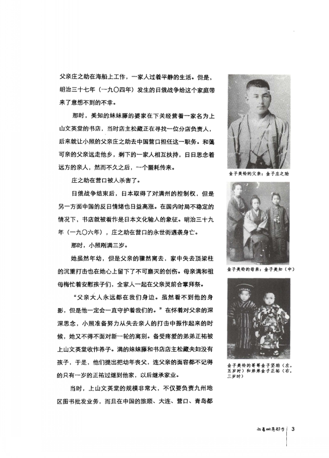 ——后来就让小照(金子美铃的小名)的父亲庄之助去中国营口担任这一职务(书店业务)。和蔼可亲的父亲远走他乡,剩下的一家人相互扶持,日日思念着远方的亲人,然而不久之后,一个噩耗传来。