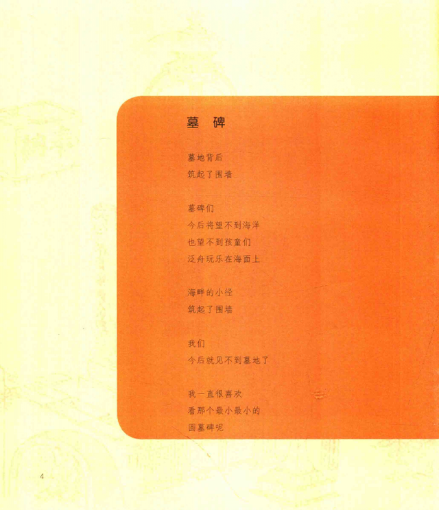 可以说通篇充满着快乐、积极、向上的情绪。但是,这篇课文从新版小学教材里消失了,然后出现了日本诗人金子美铃的童谣《一个接一个》。