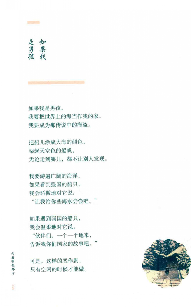而金子美铃的一些诗也能读到意在言外的意思。下面是金子美铃所写的《如果我是男孩》: