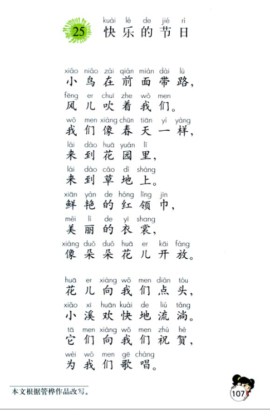 我们先看一下《快乐的节日》这一篇课文: