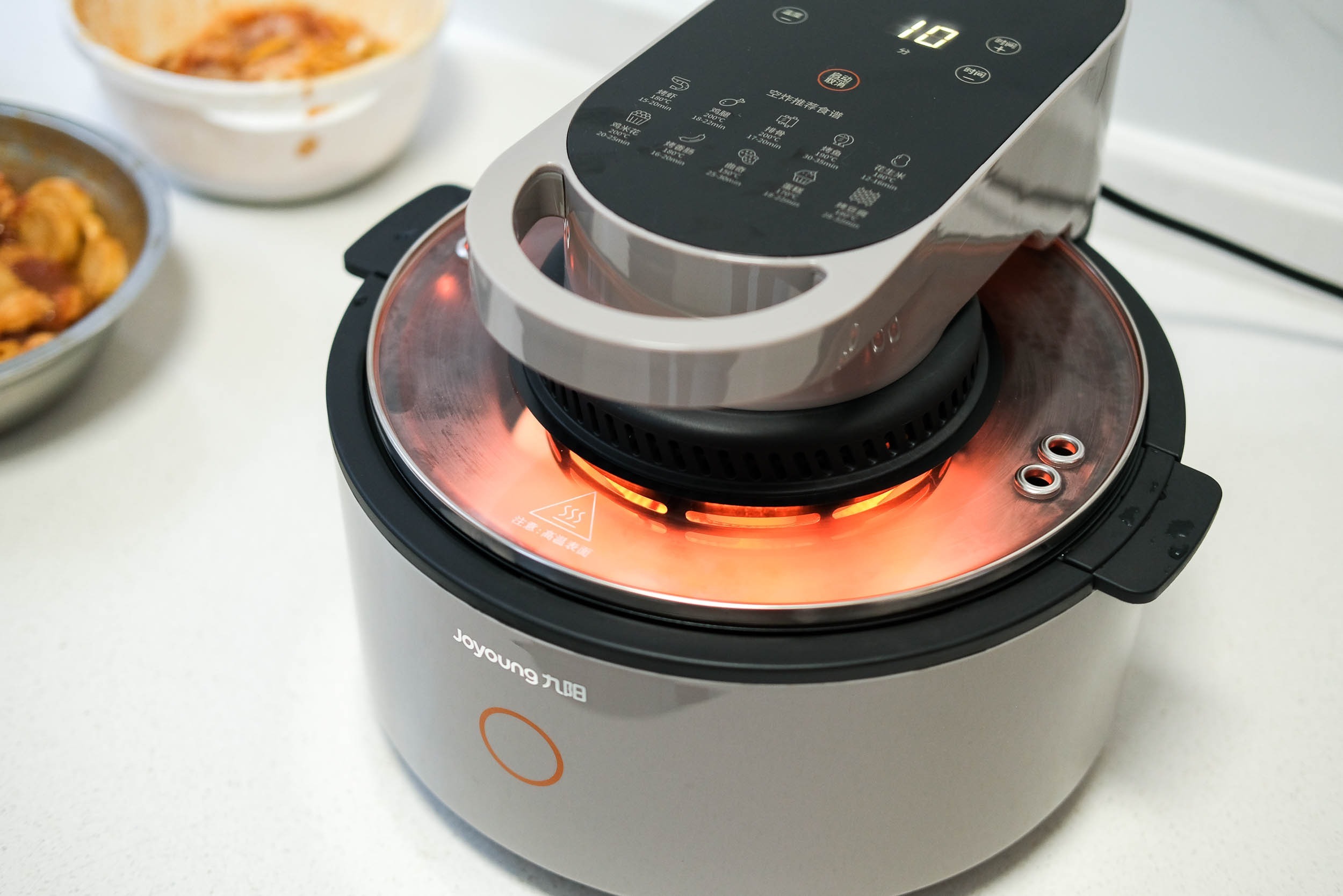 空气炸锅是这两年很火的一个厨房电器,这是一种可以用空气来进行“油炸”的机器,有点像是小号的烤箱。只要将食物放在里面,等时间到了就可品尝到色香味俱全的食物,深受很多年轻人的喜爱。但是,市面上的大多数空气炸锅其实还做不到放进去就不用管的理想状态,比如烤鸡翅、烤鸡腿这些,还是需要时不时地打开,把食品翻个面,再继续。不过,近日,九阳推出了一款太空空气炸锅,声称采用了不用翻面的太空技术。我呢,也第一时间入手,来看看,我这厨房小白,使用这款空气炸锅,能否做出美味佳肴来。