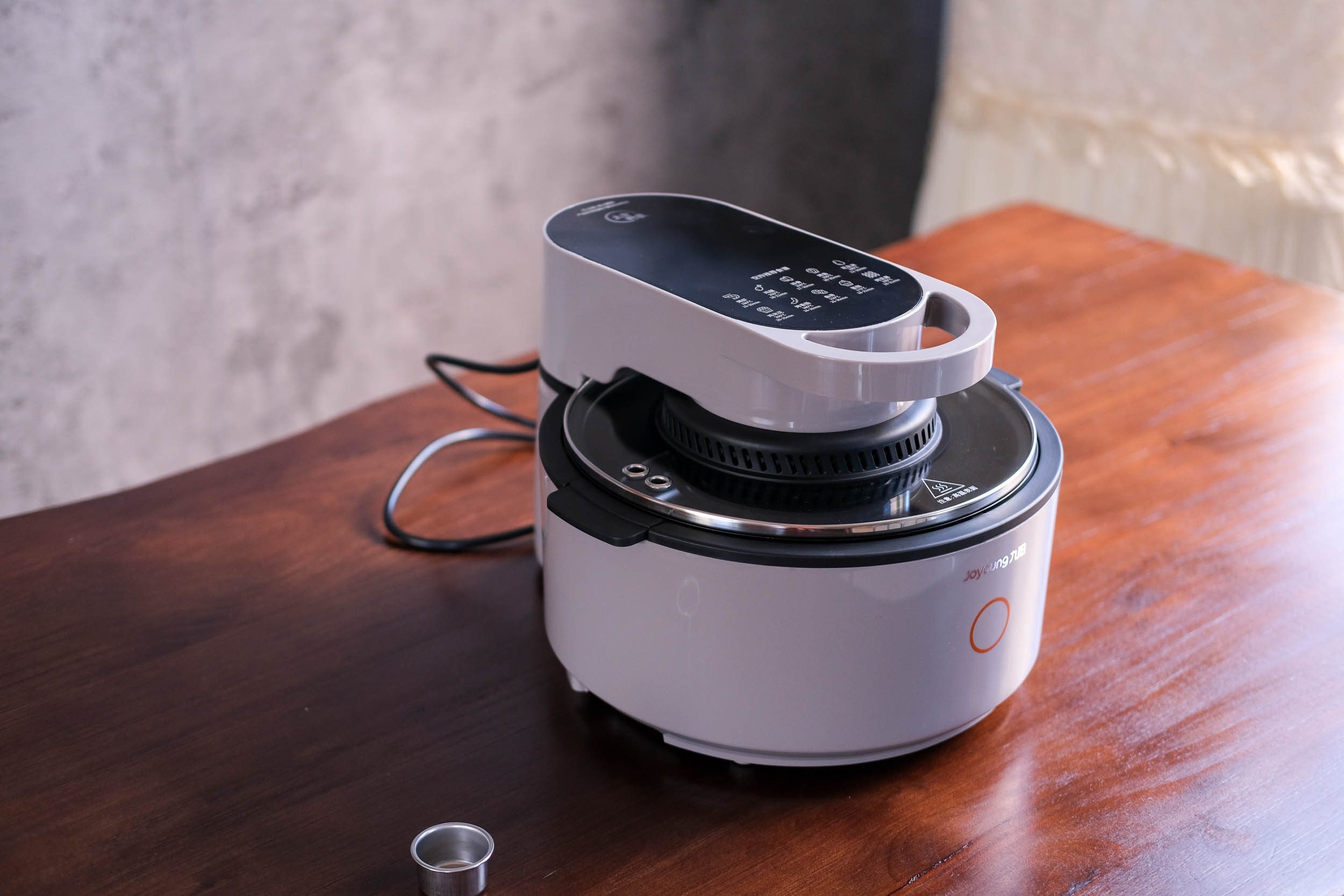 关于太空的概念有必要解释一下,因为九阳是载人航天太空厨房的研制单位,这一款空气炸锅利用了太空厨房里的立体热风循环加热技术,并且这是第三代的不用翻面可视空气炸锅。它具体名称为九阳太空空炸VF736,外观和我们印象中的空气炸锅还不太一样,采用太空灰配色,看上去更有科技感。