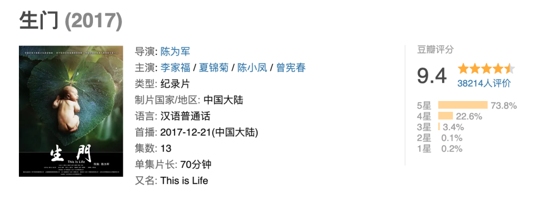 这句话出自豆瓣9.4分的纪录片《生门》,目前已经有3.8万人参与评价。