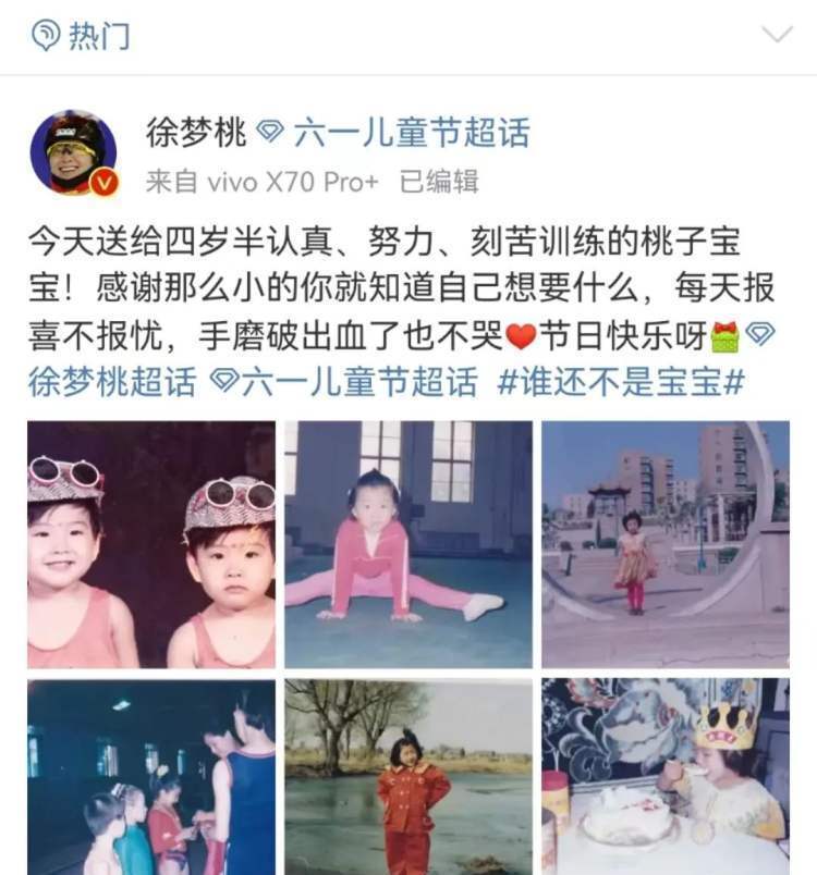 今年六一儿童节,徐梦桃在社交平台上感谢小时候的自己。
