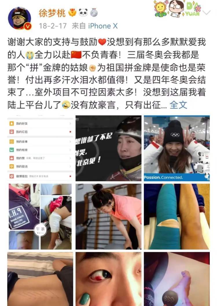 身体的伤痛让徐梦桃一度滋生了退役的想法:“希望我们还能赛场有缘再见,但现在真的要说再见了。致敬我24岁的体育生涯,还有我的28岁。”
