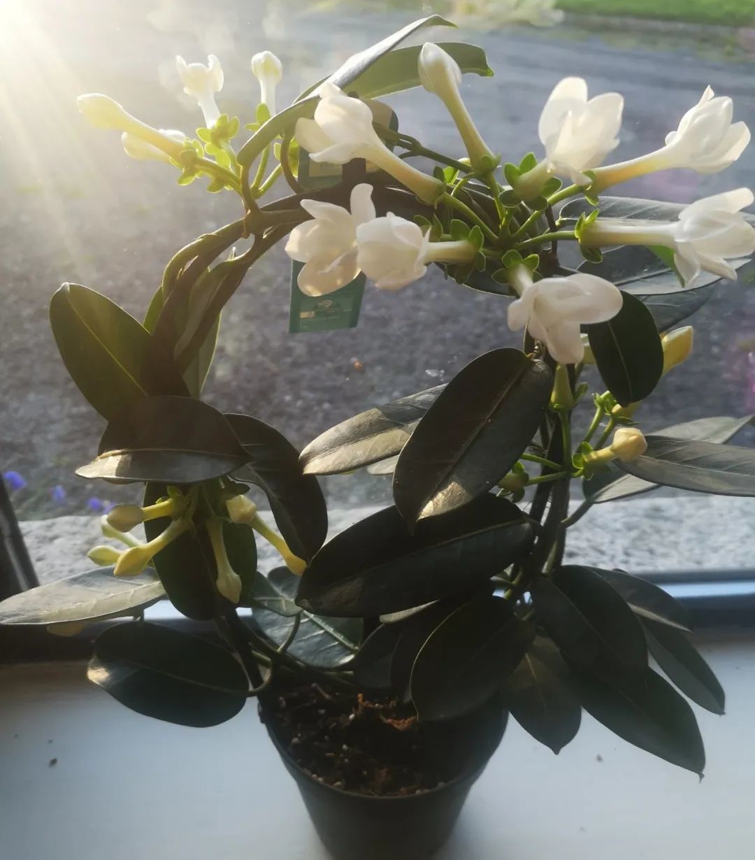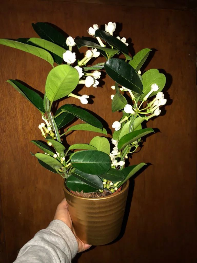 如果环境适宜(常年温润),特别是在温棚里,通过控制温度和光照,它是可以全年开花的。马达加斯加茉莉最大的缺点就是它不耐霜冻,不耐寒,它的最低养护温度要保持5度以上,它是比较适合养成室内植物的,前提是要保证养护的位置有较多的阳光。