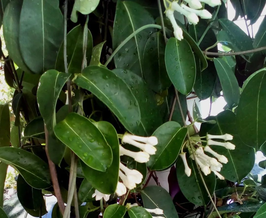 在说到茉莉花的时候,有花友提到过马达加斯加茉莉(Stephanotis floribunda),这是一种爬藤植物,但它和其它茉莉花并没有什么任何关系,因为它是属于夹竹桃科耳药藤属的,它的中文正式名叫“多花耳药藤”,它也算是挺受欢迎的小众植物。