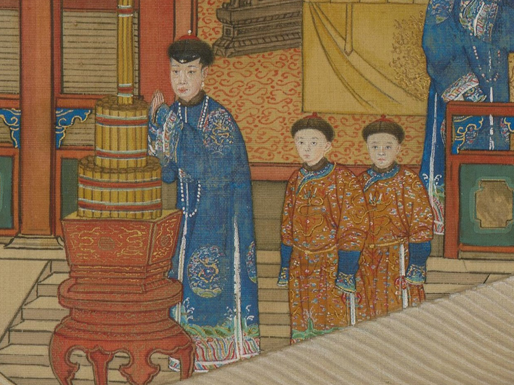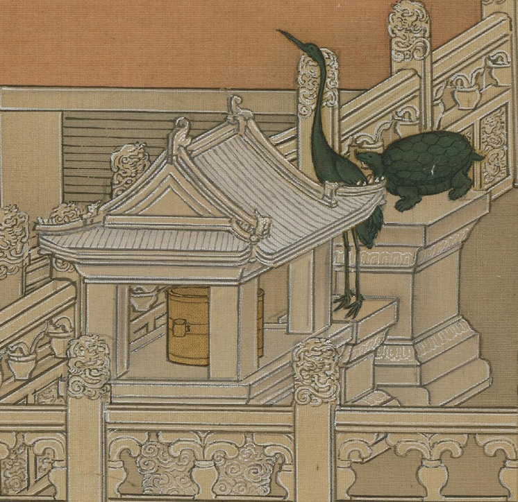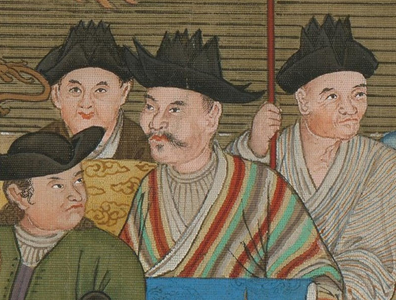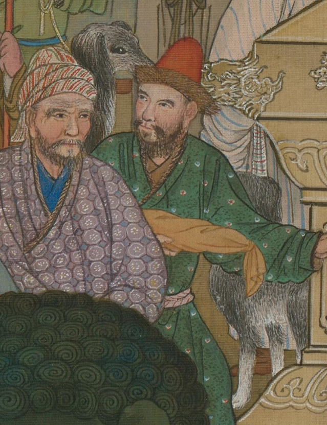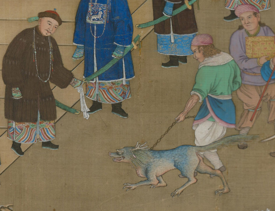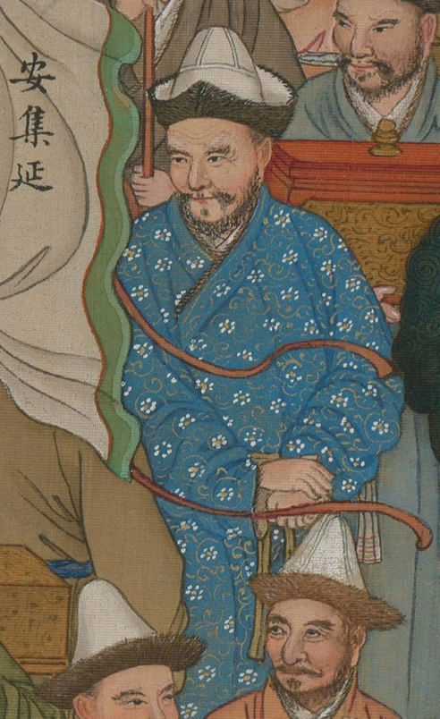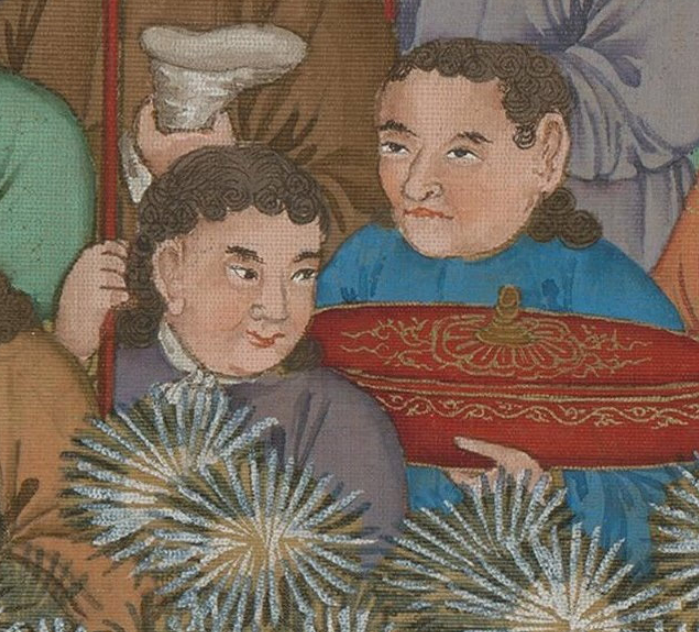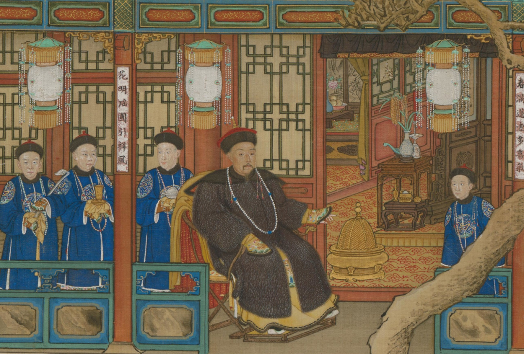 画面中宾客云集、人头攒动的大场景都是清宫里的画家们想象出来的。这是大清,一场有关“天朝上国”的美梦。