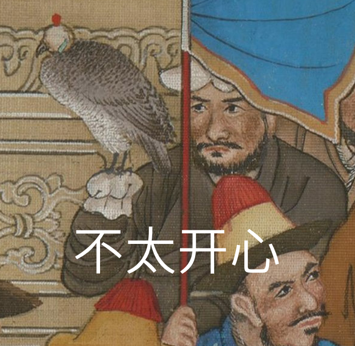 驯养员似乎不太开心,是舍不得把猎鹰献给皇上吗?