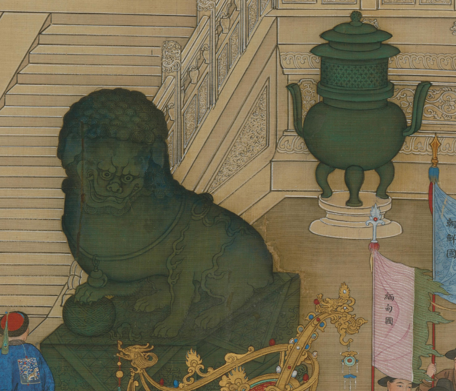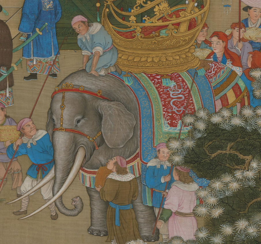 这幅故宫博物院收藏的《万国来朝图》,描绘了清乾隆时期藩属及外国使臣新年到紫禁城朝贺的场景。