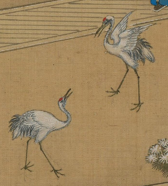 有人在游戏(观鹤),有人却在打工(扫地)。