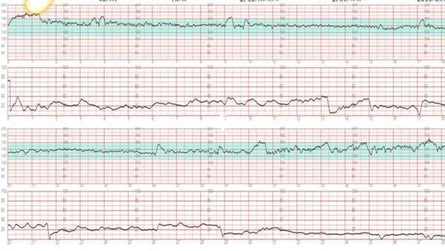 胎心监护上主要是两条线。上面一条是胎心率,正常情况下波动在110~160次/分之间。