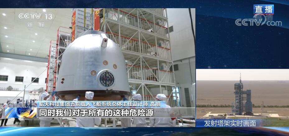 航天科技集团五院载人飞船系统总体主任设计师 高旭:我们的关键环节都进行了冗余的备份设计,不会出现由于一台设备突然失效,就导致整个航天员的生命安全受威胁的情况(出现)。同时,我们对于所有的危险源,包括火工品、高压气体都做了严格的过程控制来确保绝对安全。
