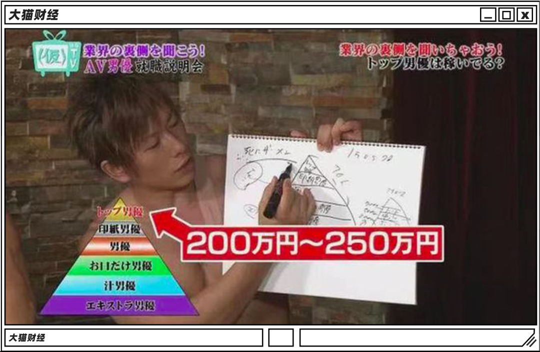 这算是AV男优的顶尖,他的月收入能达到250万日元(13万人民币)。