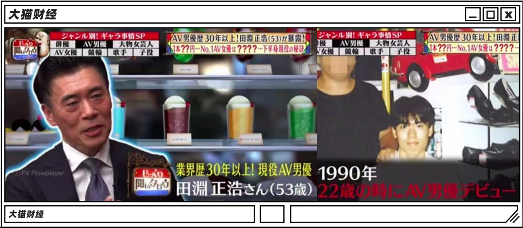 有着30多年“工龄”的资深男优田渊正浩,入行的时候才22岁,看照片那也是浓眉大眼的帅哥。