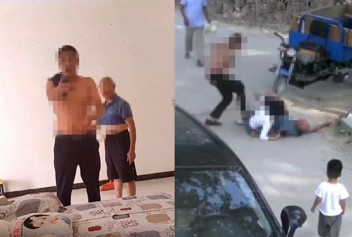 据天目新闻6月5日报道 赤裸着上半身,嘴里一边骂着脏话一边对着坐在地上的女子连踹数脚——6月5日,天目新闻接到网友爆料称,河南省周口市鹿邑县辛集镇苗庄村一名村干部,因为得知村民家属在微信群里发了一句针对自己的话,随即上门质问,期间还将身患残疾的老人以及老人的女儿双双打进医院,而这名打人的村干部至今未受到任何处理。