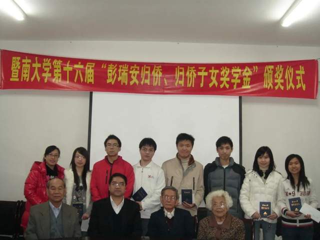 同时,他还设立了以其父亲名字命名的“彭瑞安归侨子女奖学金”,重点奖励在中国大陆内地高校学习的博士生、硕士生,以及大学生中品学兼优的归侨与归侨子女,鼓励他们努力学习,奋发成才。