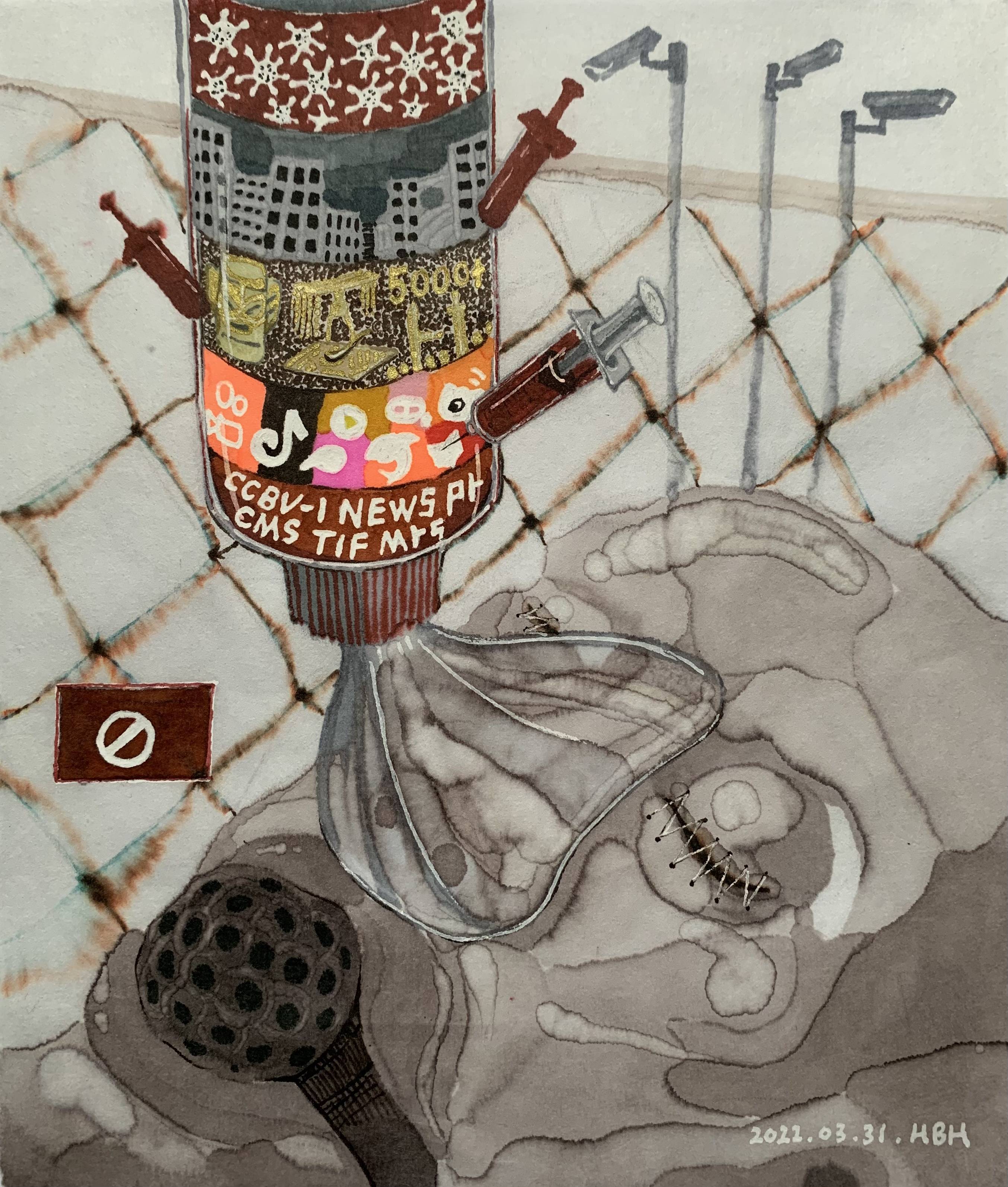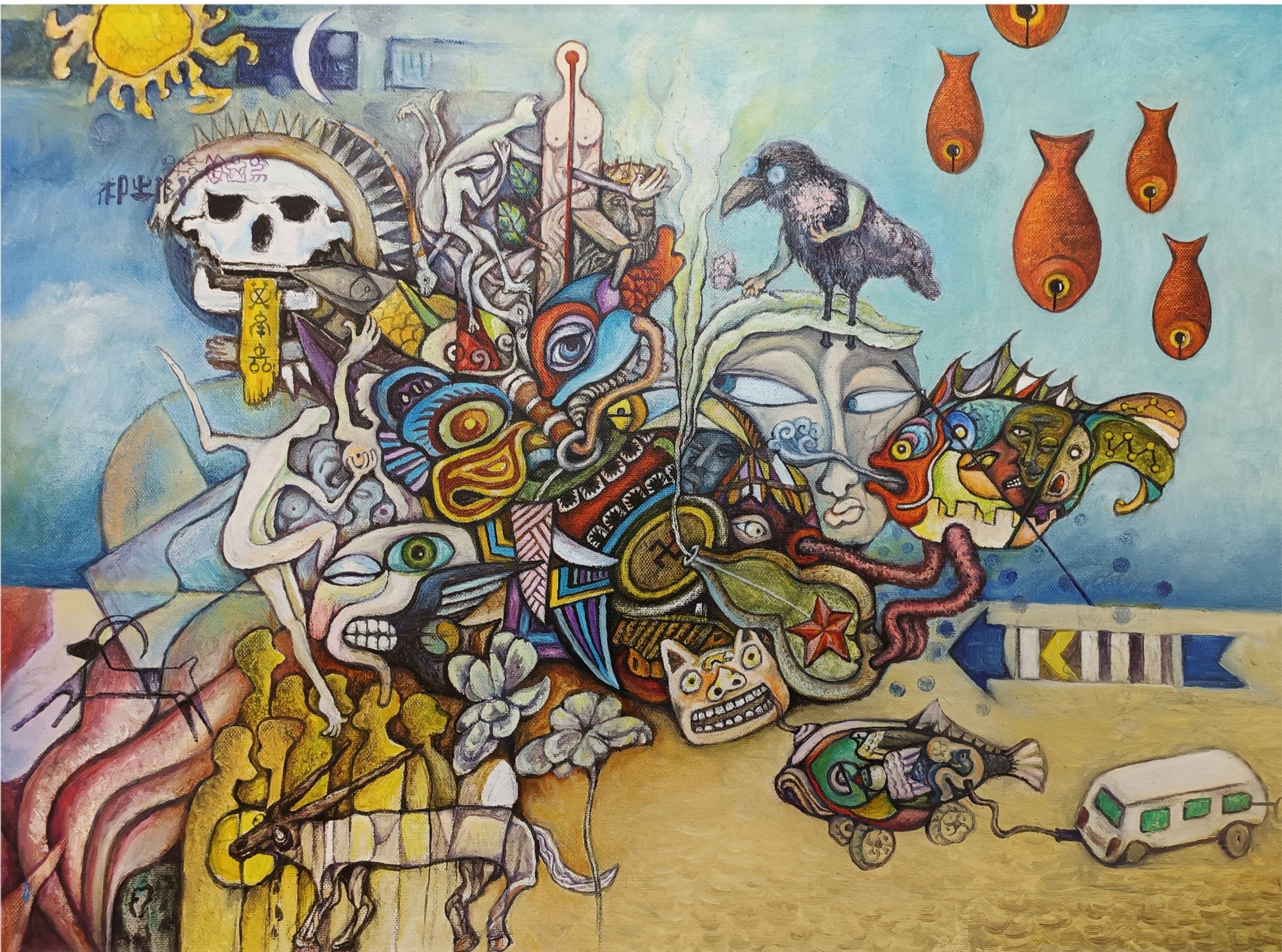 杨怡炜,02年生,通过当代艺术语言表现,分析社会心理和关注心灵的内在需求