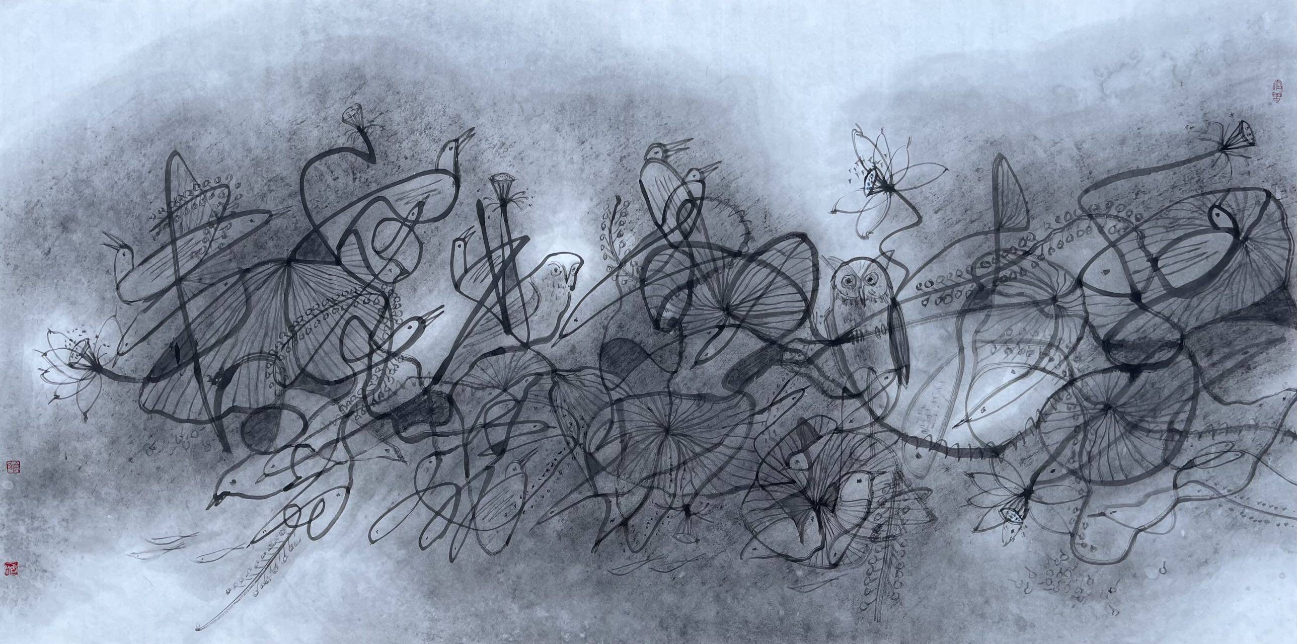 袁净 新水墨 惊鸿 68cm x 34cm 2015年作