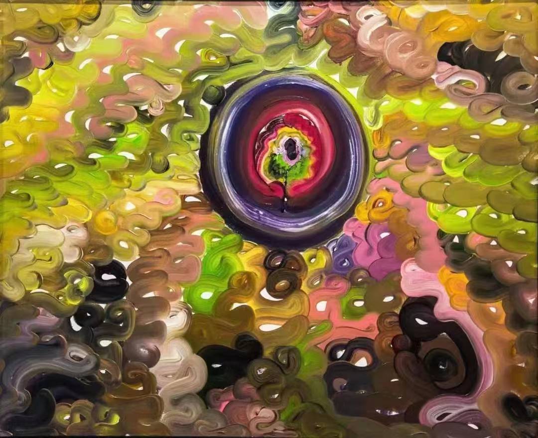 范荣泽、自然系列之《繁衍》、直径120cm、布面丙烯综合材料、2022